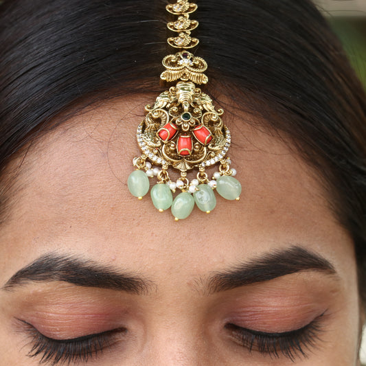 Sold outGunesh Pearl Cluster Maang Tikka