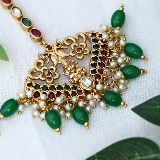 Kashvi Beads Necklace Set In Kemp & AD Stones