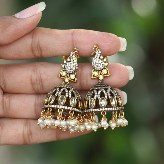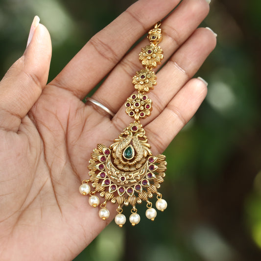 Rajni Devi Ear-Cuff Earrings With Pearl Mattal (Ear Chain)