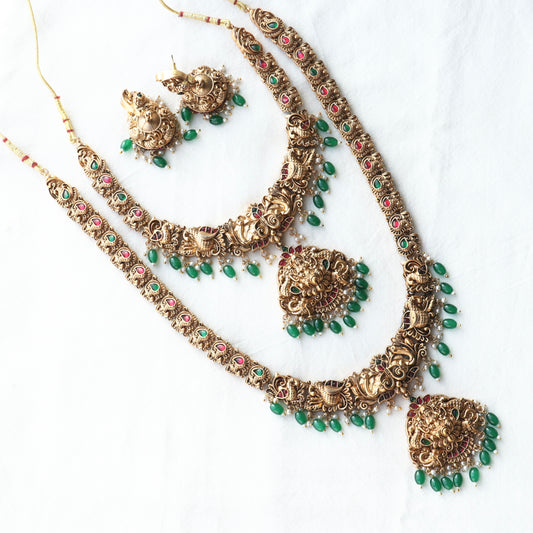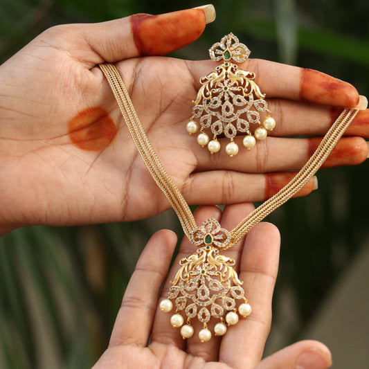 Vrishti Long Haaram - Golden Pearls / White Pearls