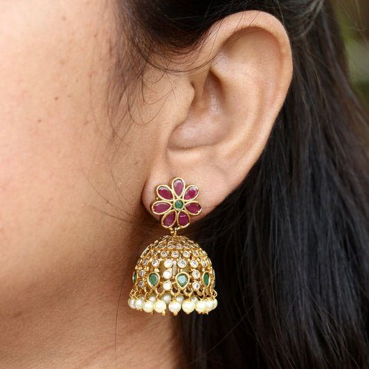 Sold outDevina Lotus Jhumka Earrings