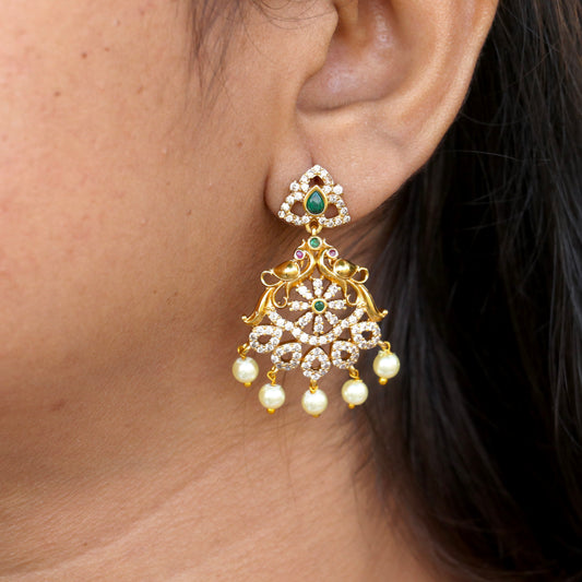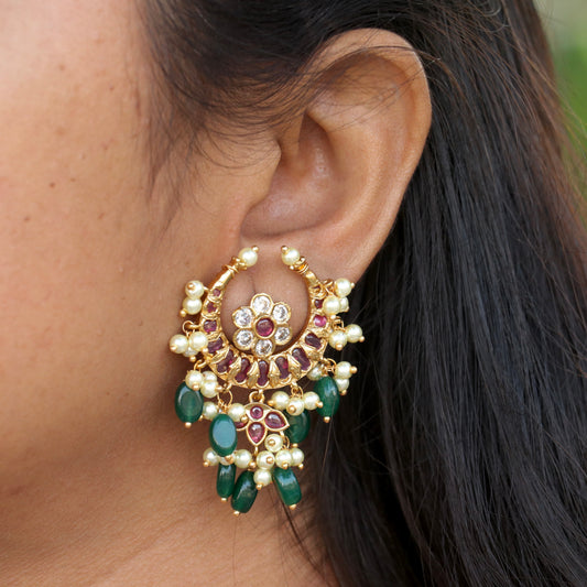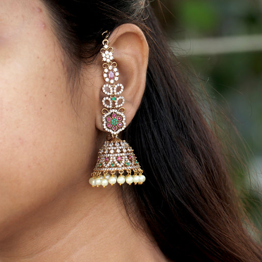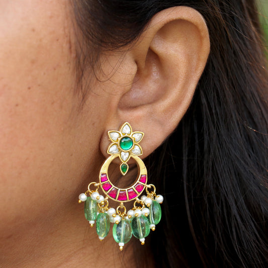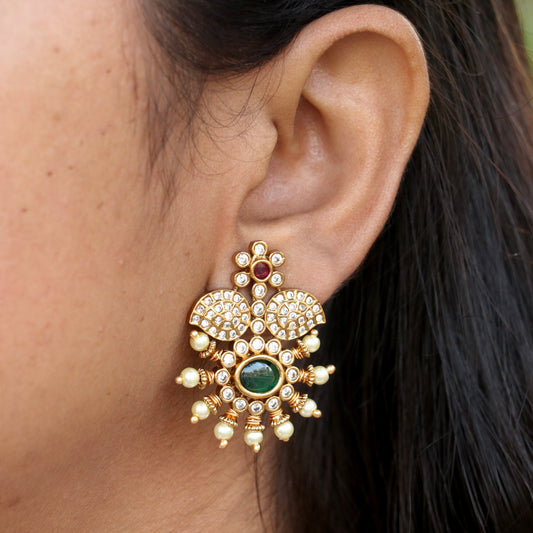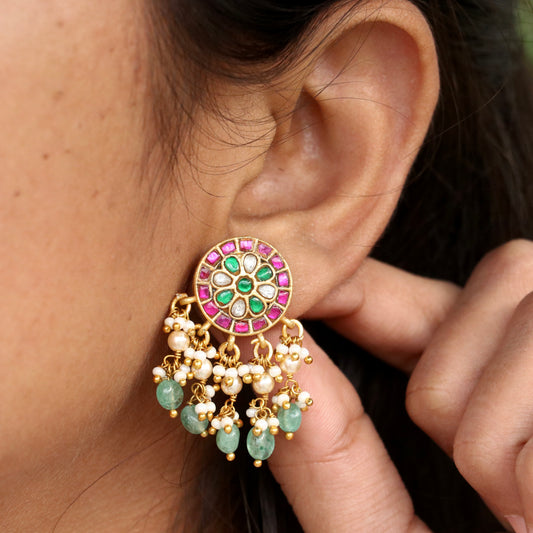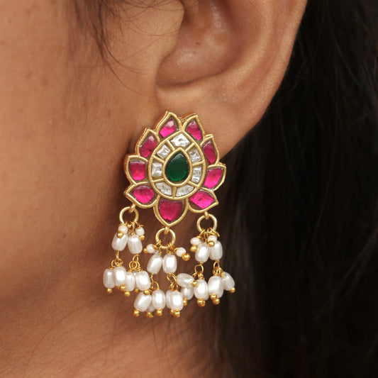 Meenal Pearl Hanging Kundan Jadau Earrings