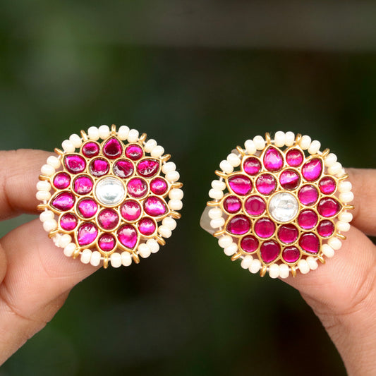 Sold outSharvya Round Jadau Kundan Ear Studs