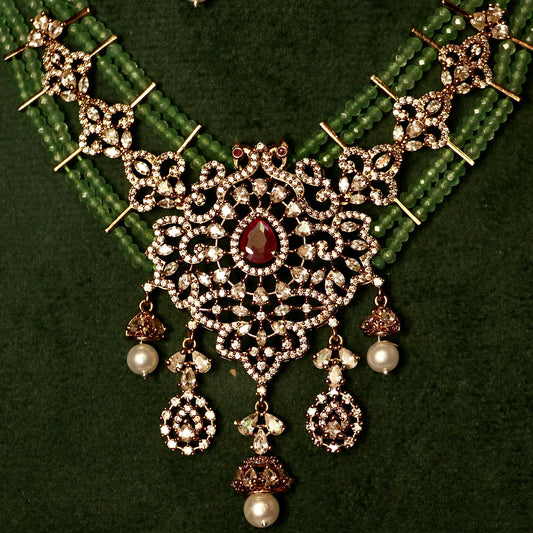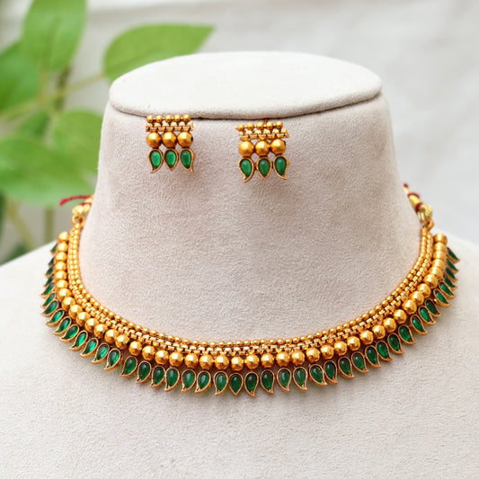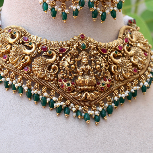 Bridal Lakshmi Emerald Beads Choker Set