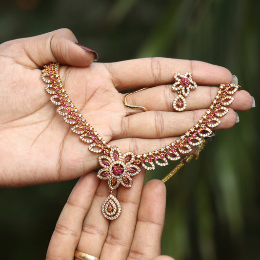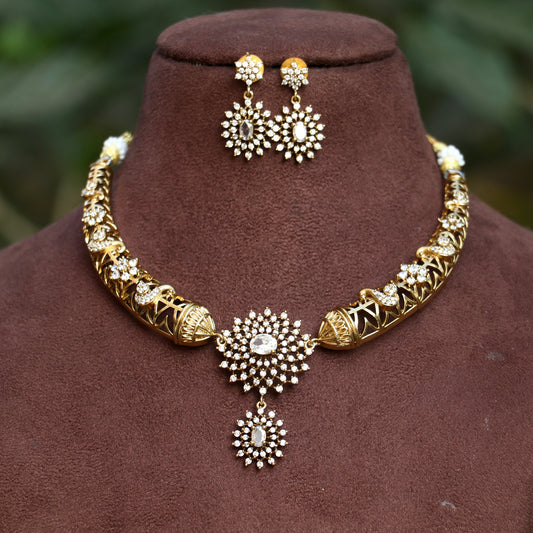Gold Finish AD Stone Necklace