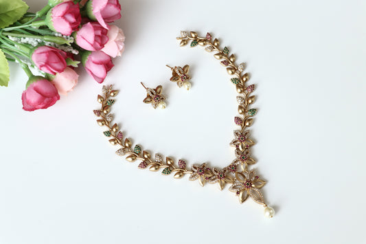 Golden Floral Necklace Set