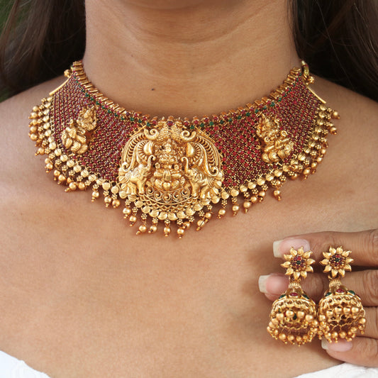 Lakshanya Ruby Kemp Stones High Neck Choker