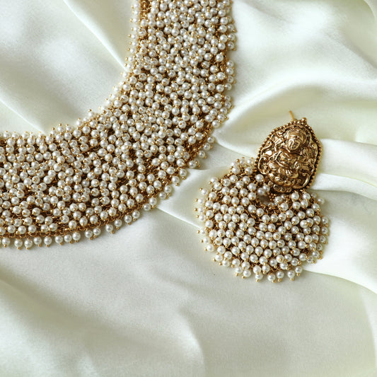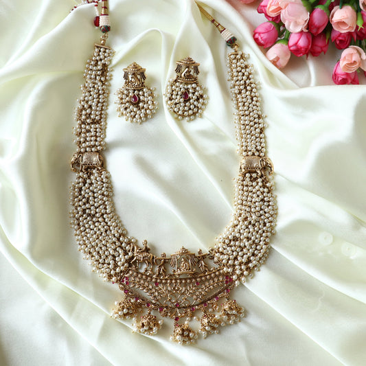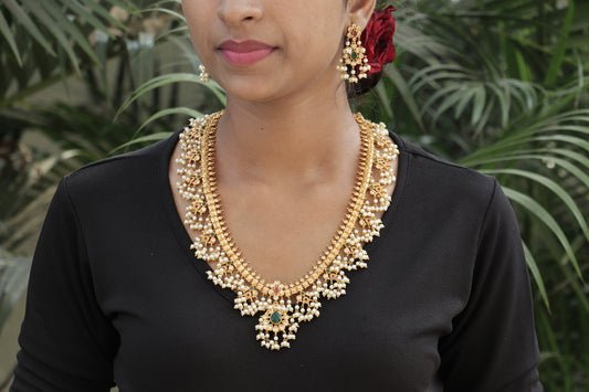 Vrishti Long Haaram - Golden Pearls / White Pearls