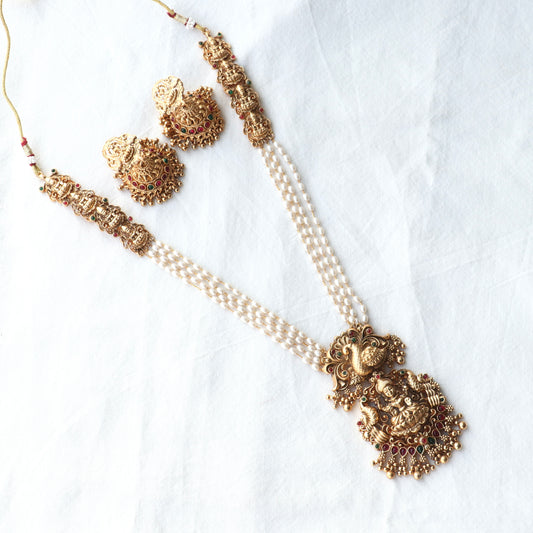 Mitra Pearl Long Lakshmi Pendant Long Necklace