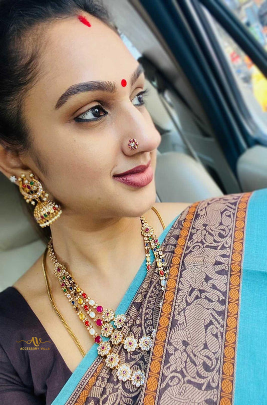 3 Layer Celebrity Stylish Long Navarathna Necklace