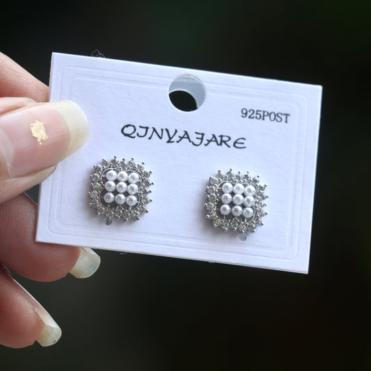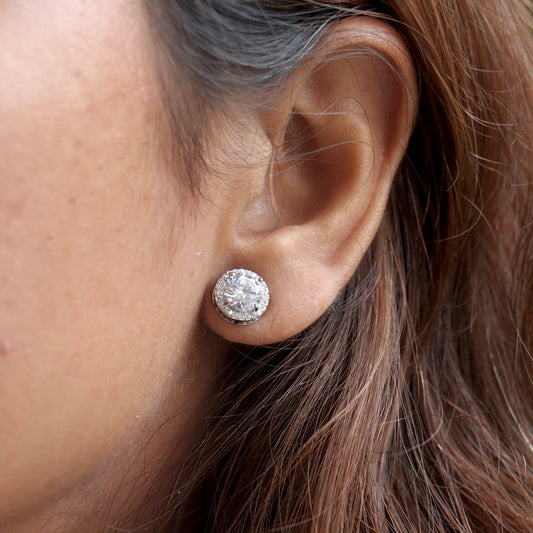 Silver Toned American Diamond Silver Plated Studs Earrings