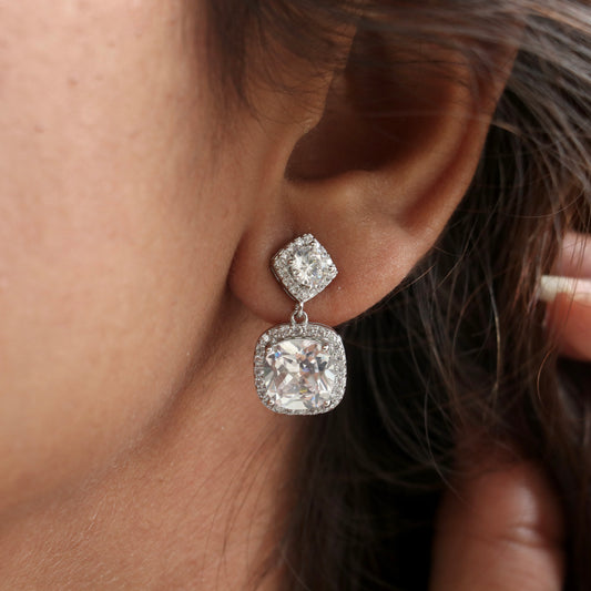 Silver Plated Rhombus Shaped CZ Drop Earring