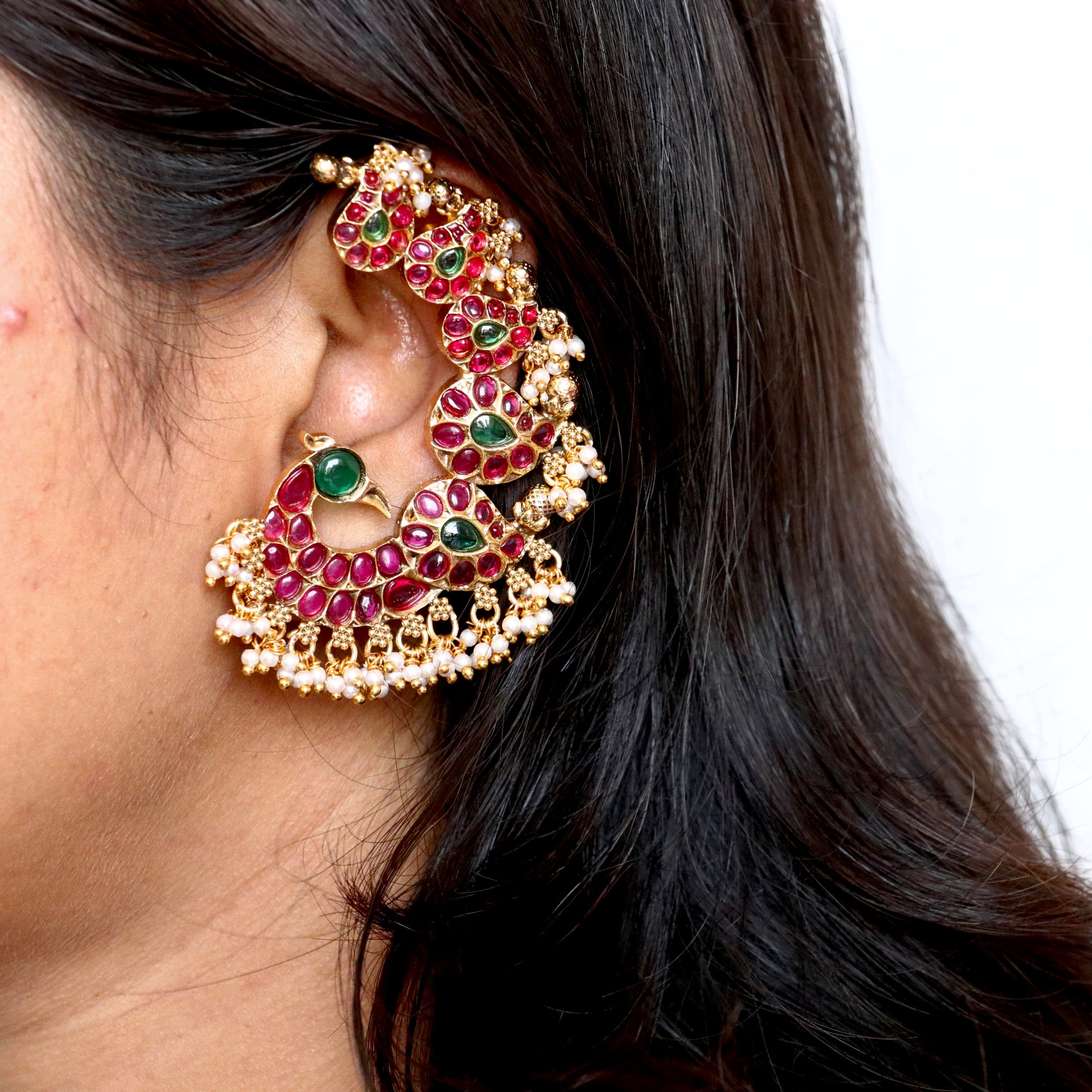 Pari Full Ear-Cuff Earrings With Pearls And Kemp Stones