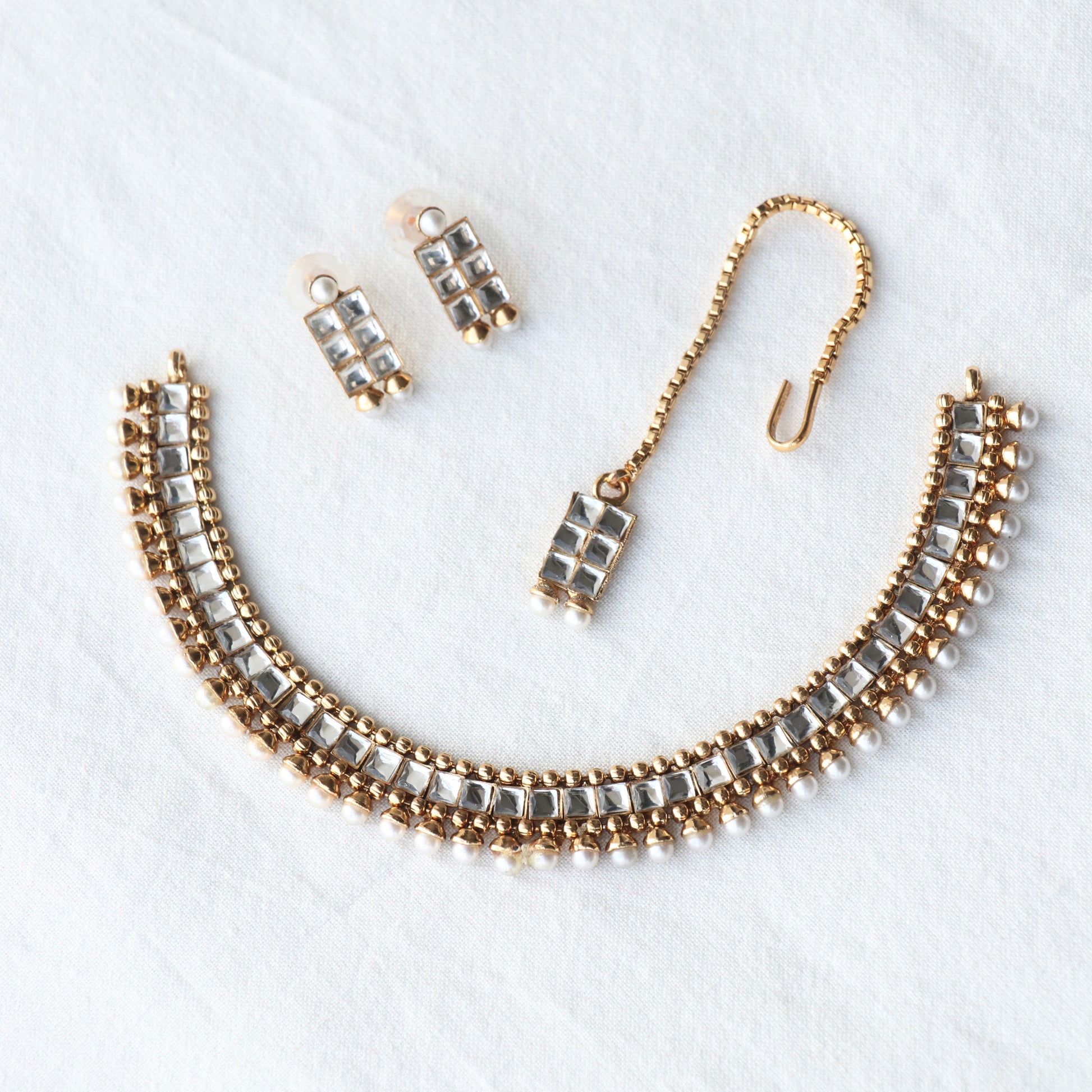 White Stone Kundan Set with Earrings & Maang Tikka